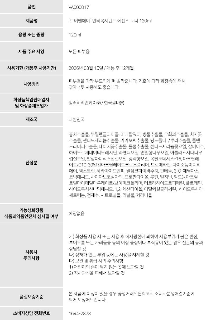 VA안티옥시던트 에센스 토너 120ml (+앰플크림 1.5ml 샤셰 증정)