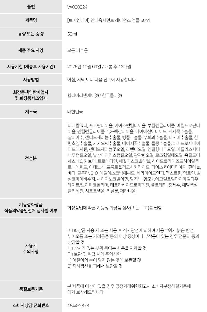 VA안티옥시던트 래디언스 앰플 50ml+앰플 마스크팩 1매 증정+쇼핑백