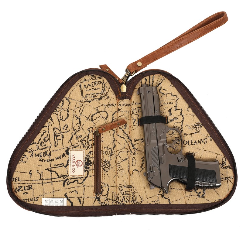 - CONVENIENT SIZE: 9.25 inches × 7 inches x 1 inches. Fits great in your handbag or purse. Fits most types of handguns and look like a daily pouch. Avoid any unwanted attention in public!