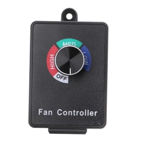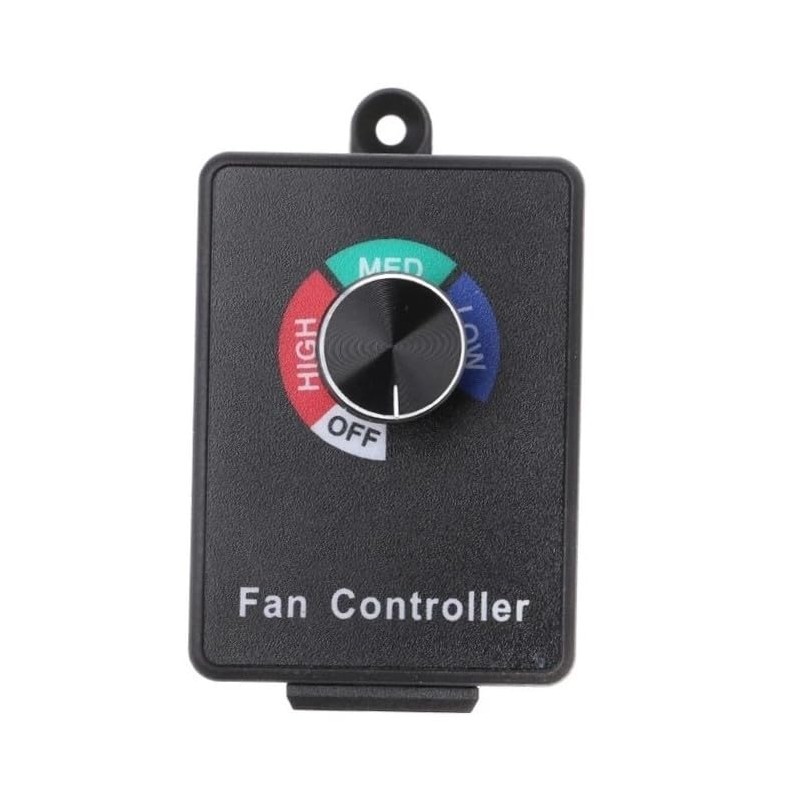 - Plug-and-Play Variable Speed Fan Controller. 3 speed settings: HIGH, MED, LOW, with power OFF option.