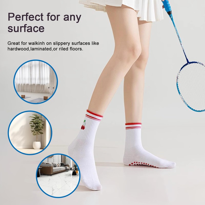 VACHAN Crew Grip Socks for Women Pilates Socks with Combed cotton Cute Cherry...