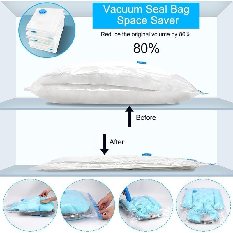 Airtight Bags Don't Leak: Our unique double - zipper seal and triple - seal turbo valve are designed to expel every ounce of air from the bag during the suction process. The fine design of the zipper seal helps the vacuum storage bag prevent air leakage even during movement, such as during travel or moving.