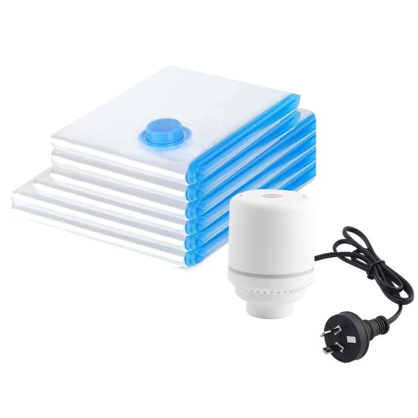 Vacuum Storage Bags 5 Pack with Suction Pump, Multiple 5-Pack (1 Jumbo, 2 Large, 2 Medium) Reusable Compression Bags Space Saver, Vacuum Bag for Packing,Clothes, Bedding, Travel