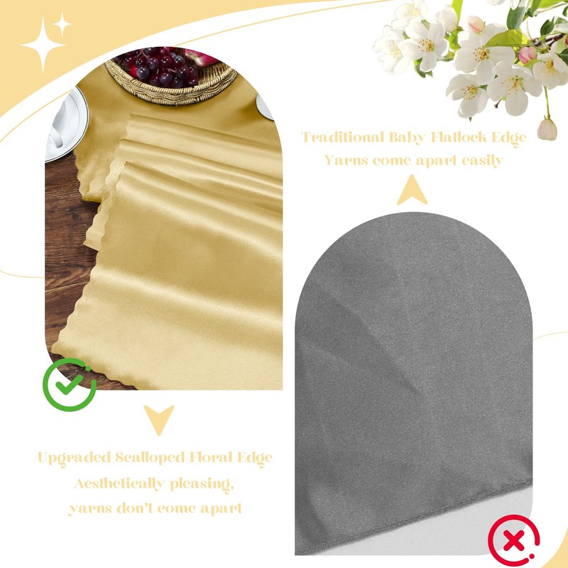 - Usage Suggestions: The wedding party table runner adopts seamless design with scalloped floral edges. It can be used alone as a table decoration to add joy to your celebration, it can also be used together with other table decorations such as satin napkins, napkin rings, satin tablecloths, satin chair sashes, etc.