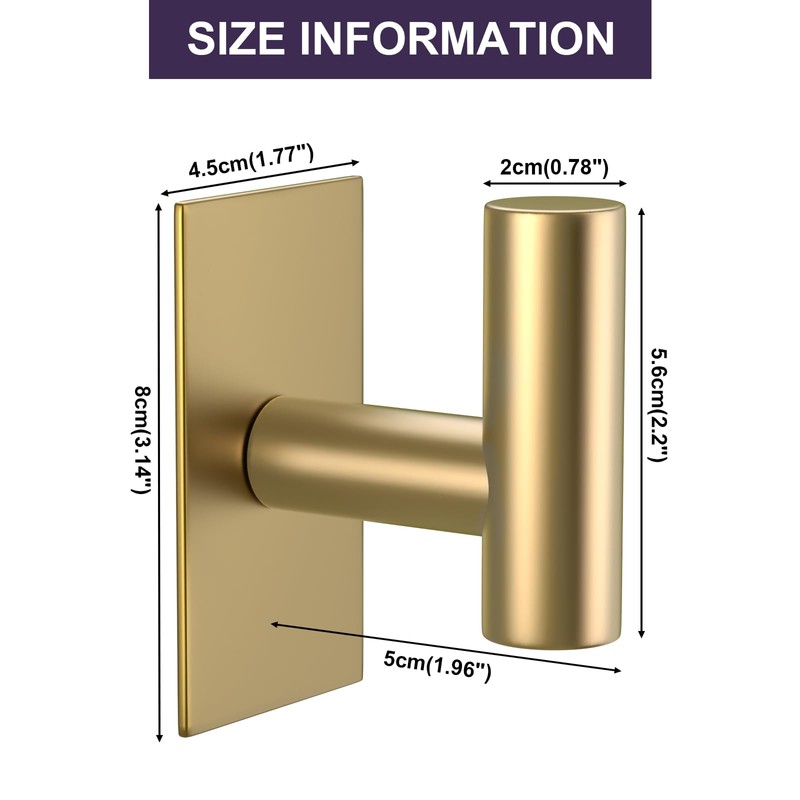 VAEHOLD Wall Towel Hooks, Heavy Duty Sticky Holder Waterproof Towel Hooks for Hanging Coat, Clothes, Closet Hook Wall Mount for Kitchen (Gold, Adhesive 2 Pack)