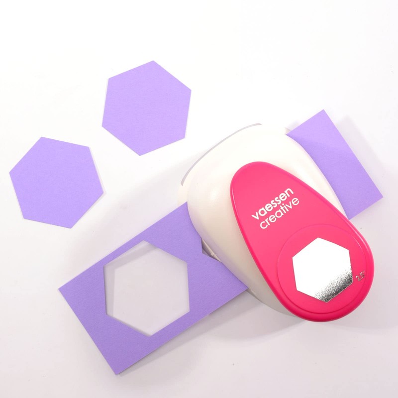 Vaessen Creative Craft Paper Punch, Hexagon, 2.5 Inch, for DIY Projects, Scrapbooking, Card Making and More, White/Pink