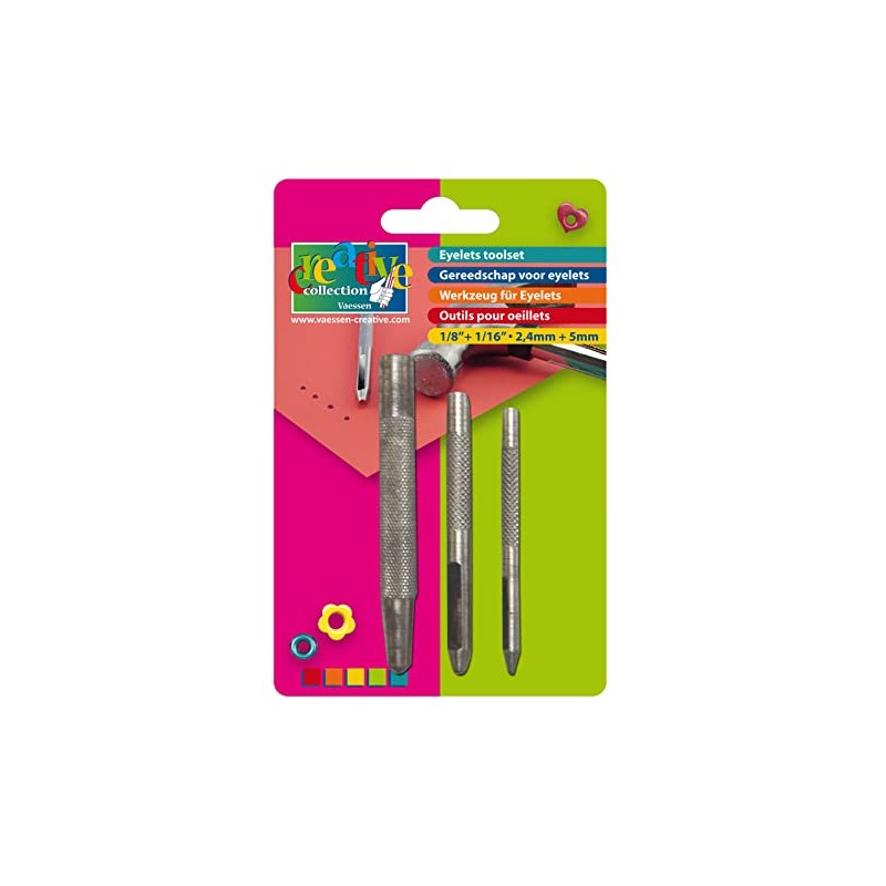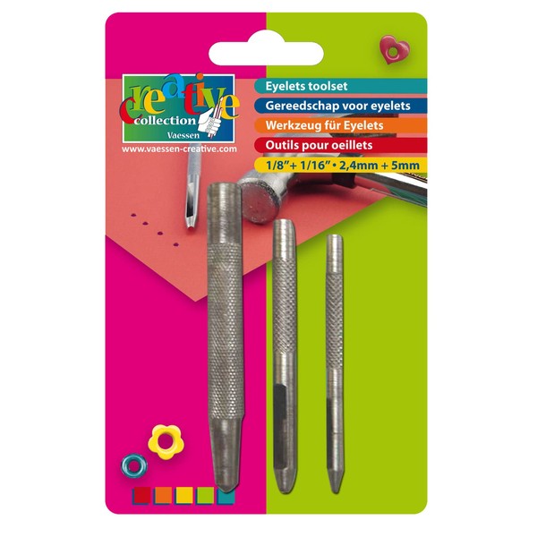 Vaessen Creative Eyelets Toolset 3pcs, Steel Multi-Colour, 14x9.3x1.3 cm