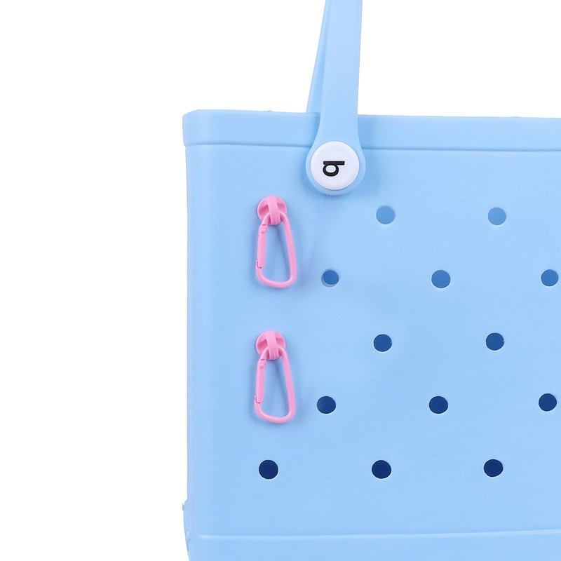 Vagocom 2Pcs D Hooks Charms Accessories for Bogg Bags and Simply Southern Totes,1.8Inch D Spring Keychain Clip with Insert Buckle Attachment for Rubber Beach Bag(Pink)