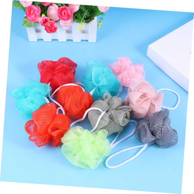 - Bath balls--10 pieces of the bath shower balls in one set will be sold together by random color,Bath puff sponge