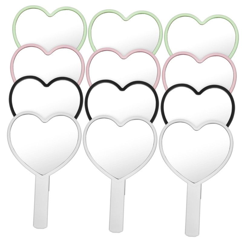 Vaguelly 12 Pcs Heart Shaped Handheld Mirrors Portable Makeup Mirrors in Black White Pink Green Cute High Definition for Salon Home Use for Friends