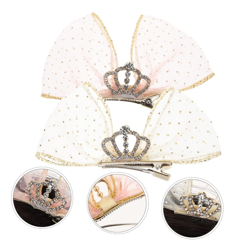 Vaguelly 2pcs Crown Bow Hair Clips for Cute Bowknot Barrettes Durable Lace Hair Bows for Parties Birthdays and Daily Wear
