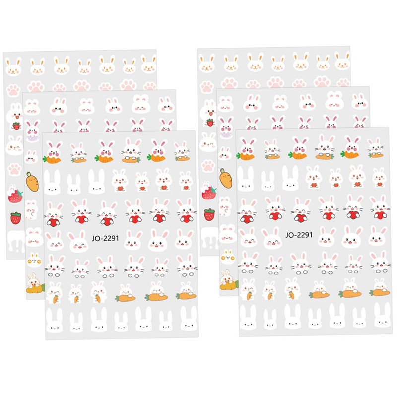 Vaguelly 2sets 6 Sheets Bunny Nail Art Stickers Cute Rabbit Nail Decorations for Women for Home Salon Use 6sheets*2