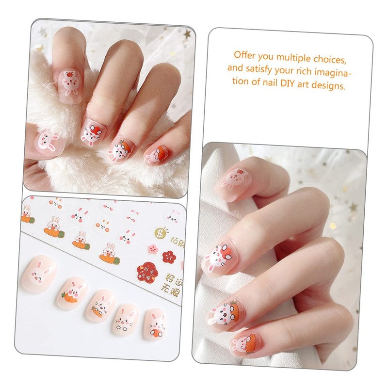 bunny nail art decal for decorating various nails, including gel nail, acrylic nail, natural nail, false nail, nail tip and more.nail decor Skin friendly, you can use them with confidence, enjoy the fun of DIY nail art with family or friends.false nails Enough quantity and for your different needs, bring more fun and joy