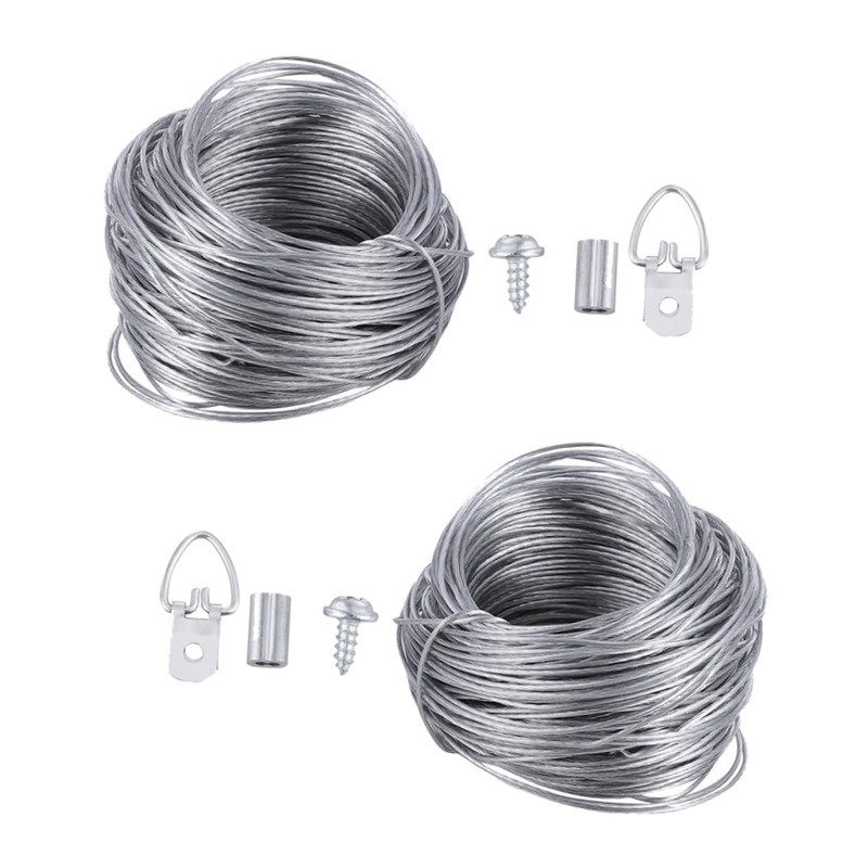 picture wire hanging This product is a picture frame hanging accessories kit, made by materials, safe and durable.frame hooks for hanging You can install this set of cable and hooks on the wall, and then various decorations such as picture frames
