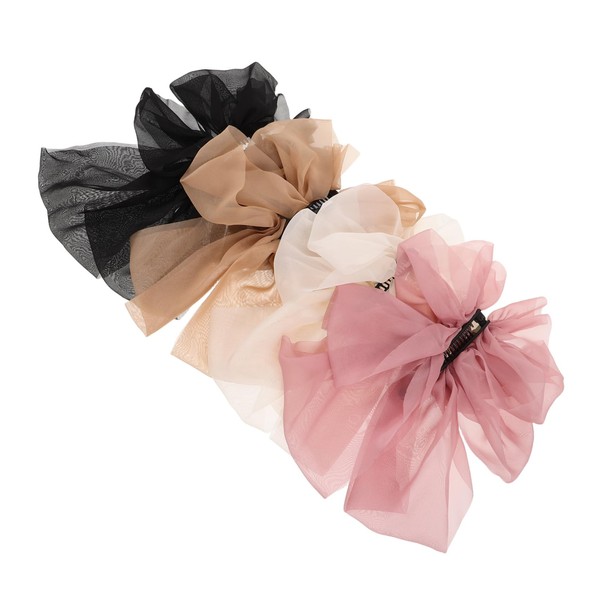 Vaguelly 4pcs Multi Layer Bow Hair Clips for Women French Style Banana Barrettes Elegant Hair Accessories for Casual Work and Party Looks