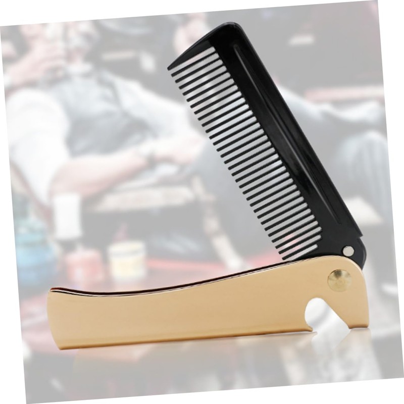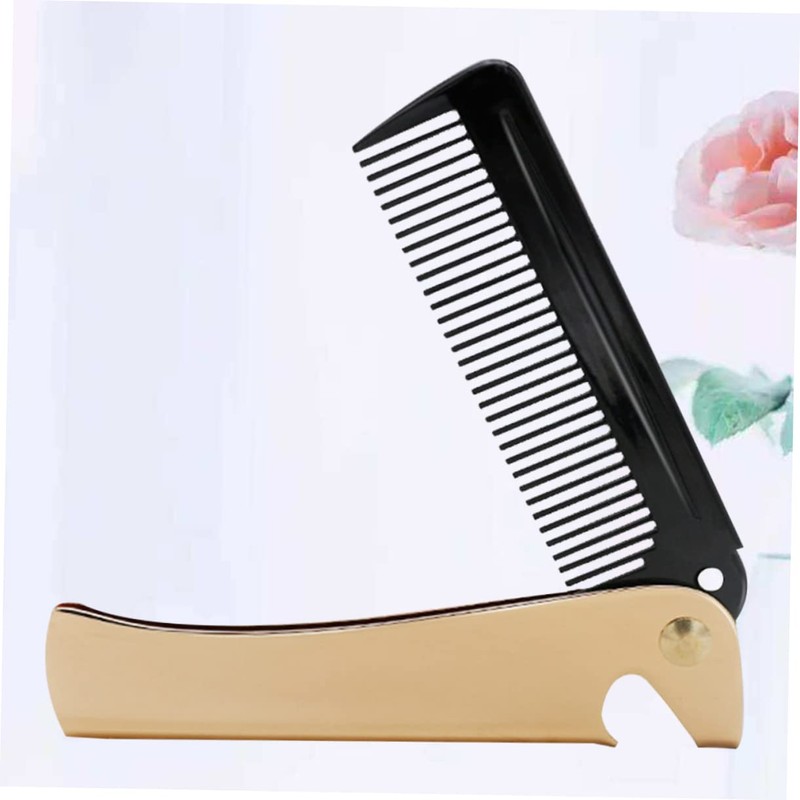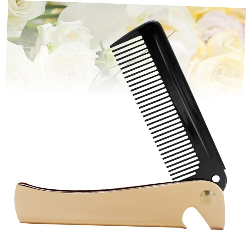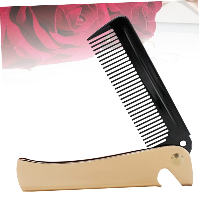 Vaguelly Gold Stainless Steel Foldable Hair Comb Portable Anti-Static Styling Comb for Men for Travel and Beard Grooming