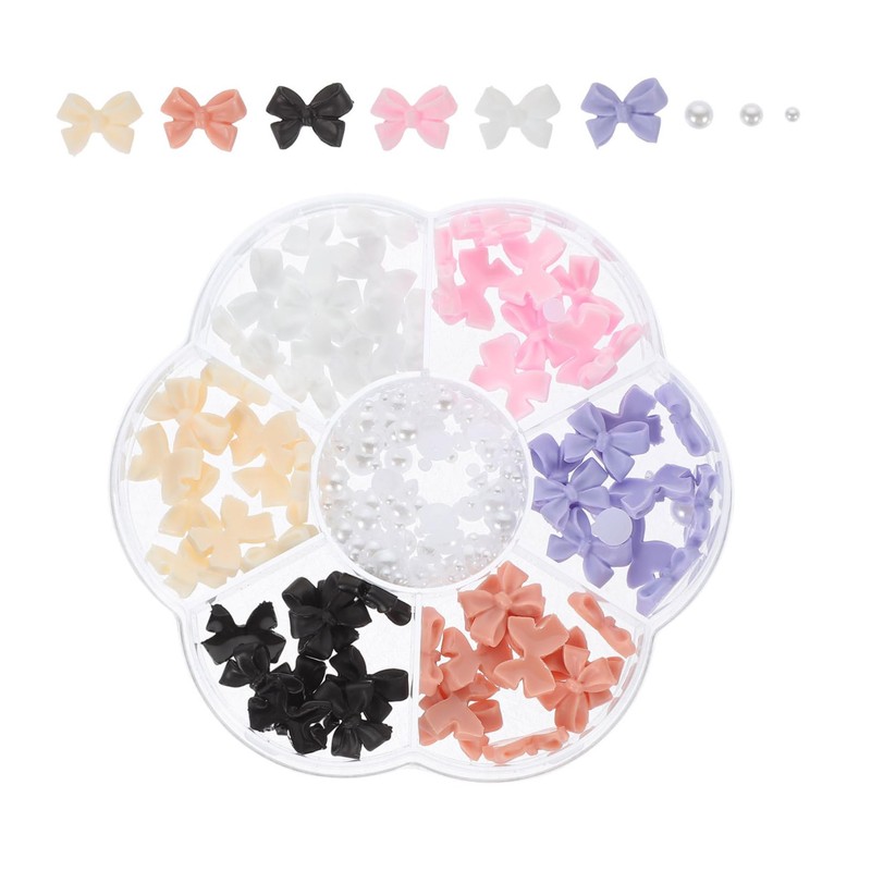 -Note: 7 grids type(6 grids bow charms, 1 grid pearl charms) bow nails charms