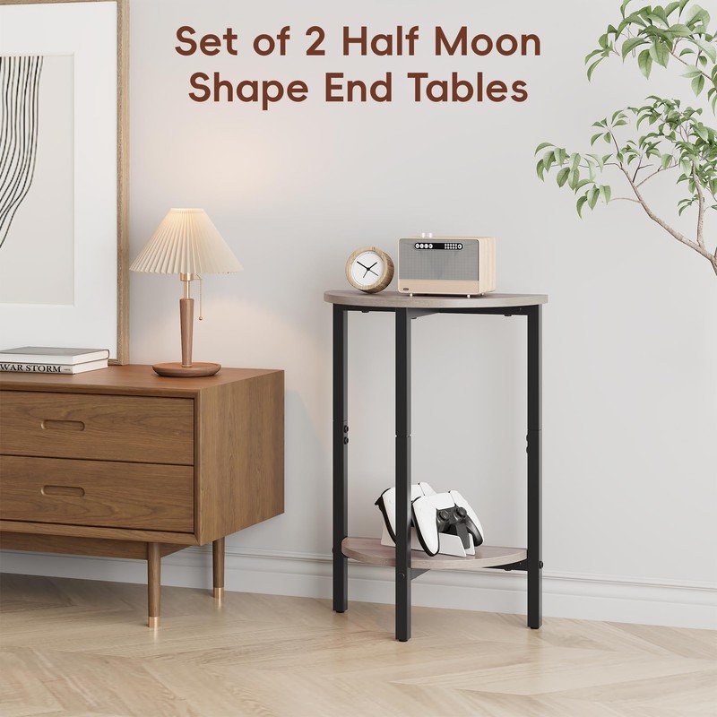 Vagusicc Side Tables Small End Tables, Set of 2 Half Round Side Table for Living Room, 2 Tier Small Couch Side Table, Small Round Coffee Accent Table, Thin Sofa Table Narrow Entryway Table, Grey