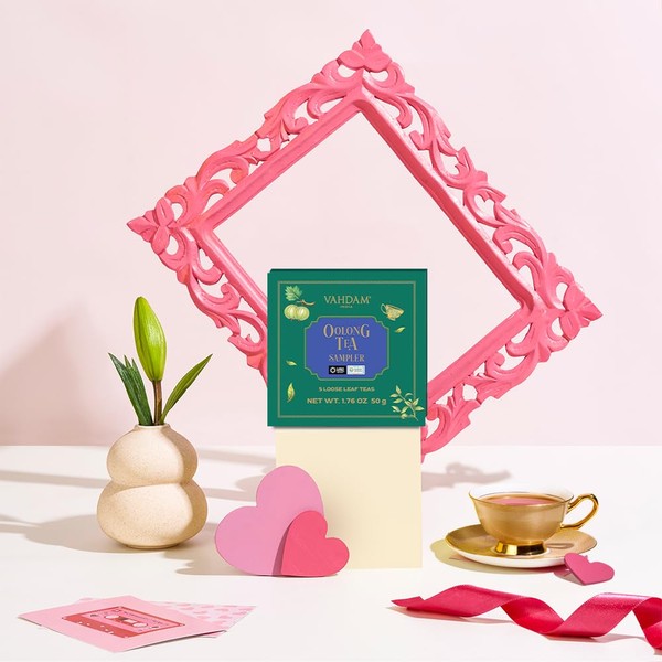 VAHDAM Assorted Oolong Tea Gift Set – 5 Exotic Loose Leaf Flavors in Resealable Pouches | Perfect Valentine’s Day 2025 Gift for Men & Women