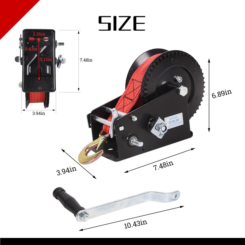 VAIDPRO Boat Trailer Winch Hand Winch 3500lbs Heavy Duty Hand Crank Winch with 33ft Polyester Strap, Manual Operated Ratchet ATV UTV Boat Trailer Marine