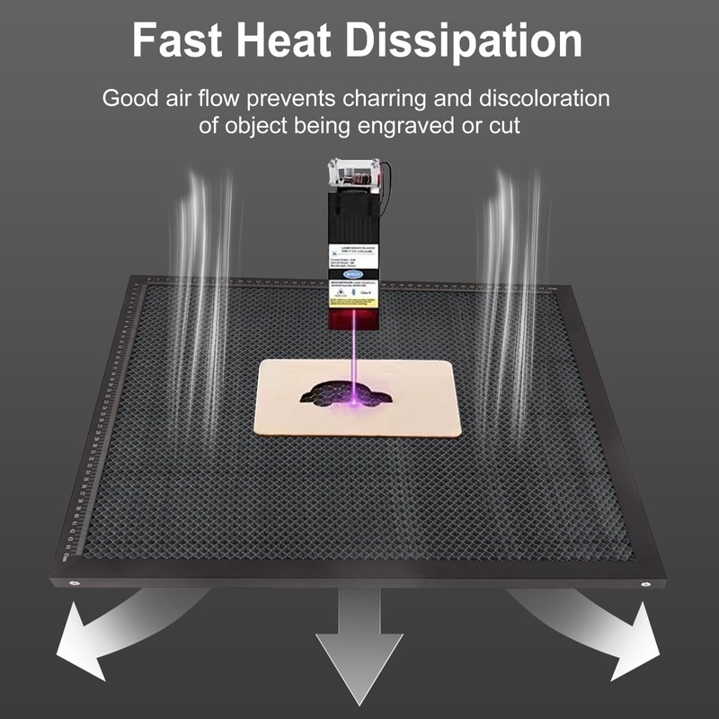 - 【Excellent Cutting Effect】Fast Heat Dissipation. The design of flat and smooth with uniform honeycomb holes accelerates smoke, solving smoke-related blackening issues with wood and other materials thus ensuring the clean and tidy cutting work, it enhances the carving effect of laser cutters.