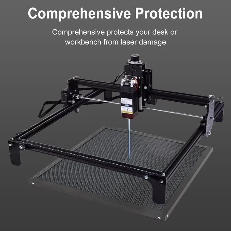 - 【Comprehensive Protection】Our honeycomb laser bed comes with an aluminum panel that you can place under the grid to protect your table or workbench from laser damage and to collect all the debris from cutting. Additionally, for your safety, we offer four corner protectors to prevent any potential danger to your hands.