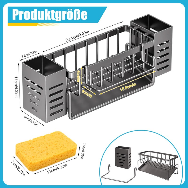 - Our sink organiser comes with a soft sponge that makes cleaning your dish rack much easier.