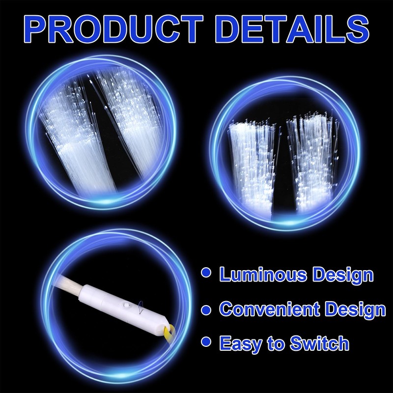 - Light up Your Party: Each of our white fiber optic wands is equipped with a button battery. Just press the switch button on the handle, and the fluorescent stick will emit a flickering light, showing a twinkling effect of stars, as dazzling as fireworks. It looks attractive in the dark, and can easily create a vibrant and joyful atmosphere for your party and create a grand visual feast.