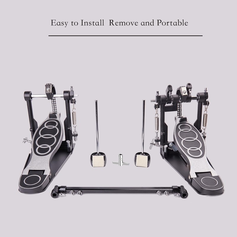 - Double Chain Drum Kick Pedal - This double bass drum pedal adopts a thick double chain,a wider bottom plate,a longer pedal, and an overweight design,which is stronger and more stable than the single chain pedal