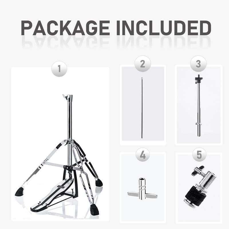 - THREE LEGS HI-HAT STAND: Double-braced 3 legs Hi-Hat stand can withstand more beating and harder hits.No matter your cymbal size or playing style.