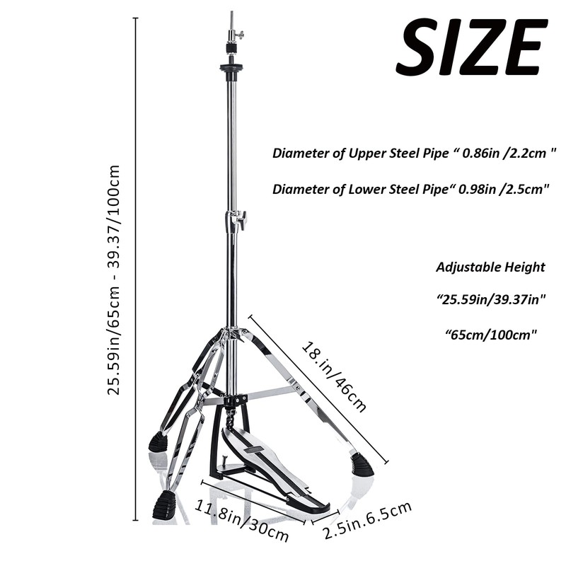 - HEIGHT RANGE: The hi hat stand can Adjust angle and height (23.6" - 39.3" inch / 60-100cm),The pedal can pivot so you can get just the position you want.