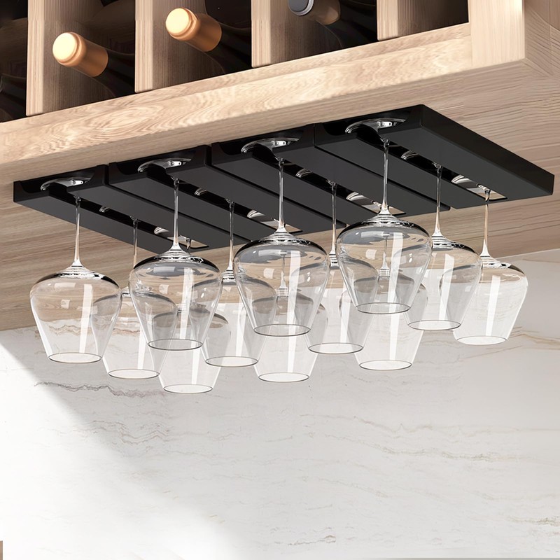 - 🍷【SUITABLE FOR MULTIPLE GLASS TYPES】:Depending on the size of the glass, each rack can hold up to 3to 6wine glasses with ease, suitable for a variety of glass types like Bordeaux/Burgundy glasses, Champagne glasses, cocktail glasses, etc. This wine glass rack also fits under most kitchen cabinets.