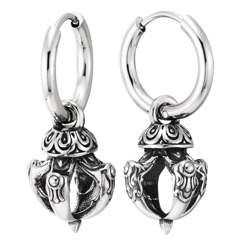- Vajra Hoop Earrings Stainless Steel Tibetan Dorje Tribal Dangle Earrings Spiritual Punk Rock Jewelry