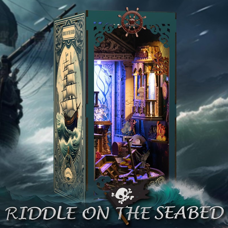 Vaki Vaki Vaki Vaki Book Nook Kit with Dust Cover & LED Light, DIY Miniature House Kit for Birthday, 3D Wooden Bookends Puzzle, Bookshelf Decor for Adults, Teens, Beginners (Sea Maze)