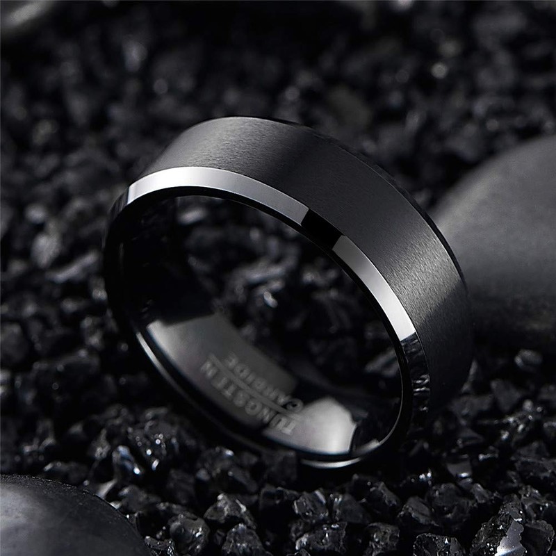 Vakki 8 mm Matt Black Men's Tungsten Ring Black Men's Tungsten Carbide Ring W...