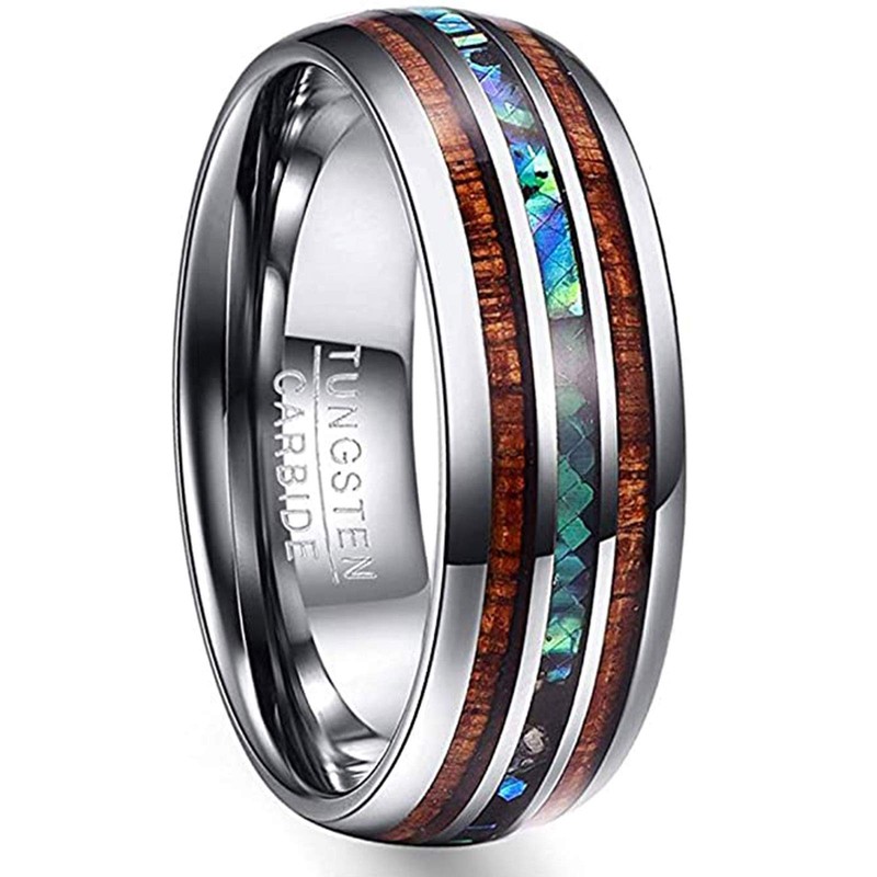 Vakki 8mm Mens Wedding Bands with Hawaiian Koa Wood Abalone Shell Inlay Dome Tungsten Rings Size 10.5