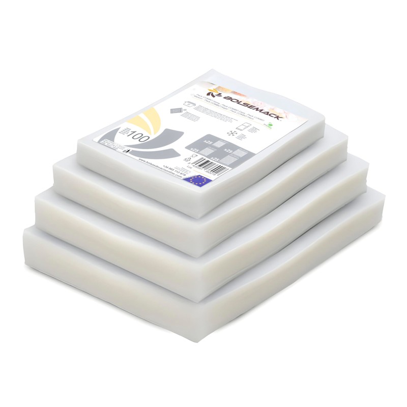 - For household vacuum packaging machines of all kinds, they have a smooth side and an embossed side that allows the air to be vacuumed. They are suitable for almost all household packaging machines, such as Lacor, Oster, Foodsaver, Garhe, Magic Vac, Orved etc.