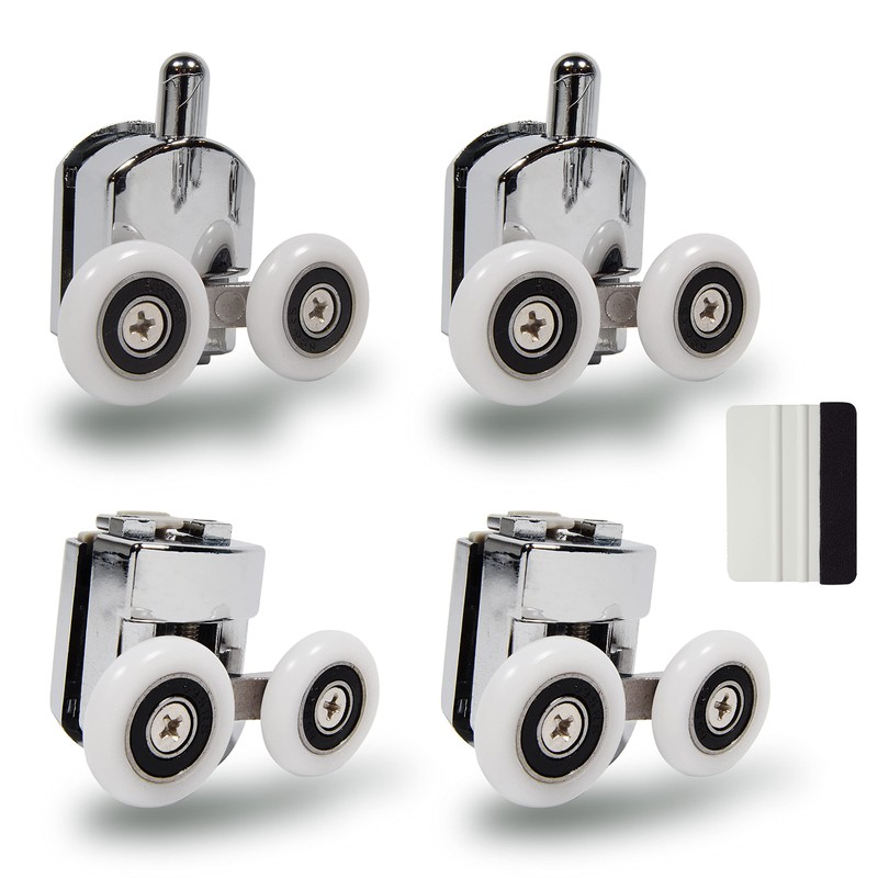 Valaw 23mm Shower Door Wheel Rollers Top and Bottom (4-Pack) Zinc Alloy - Chrome - Comes with Squeegee