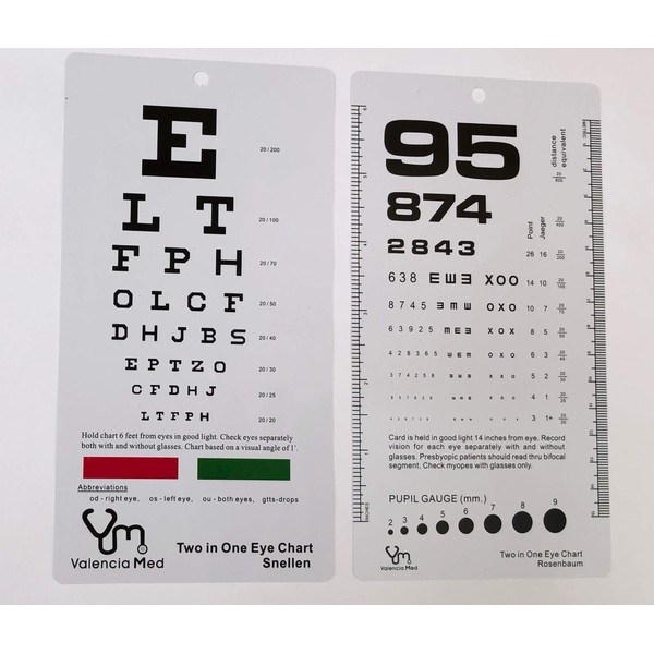Valencia Med Two in One Pocket Eye Chart, Rosenbaum/Snellen