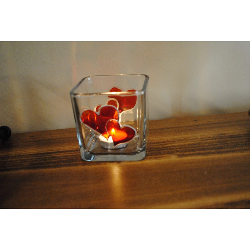- Size 3.5 inch square glass candle holder;Perfect for tea light or votive candle, flower vase, or change/ key container.