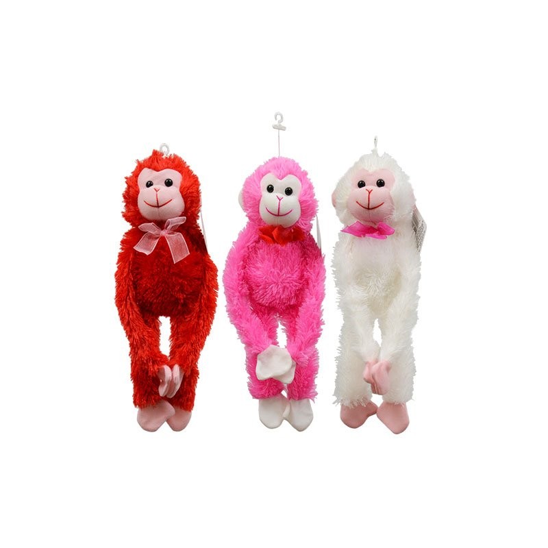 Valentine Plush Hanging Monkeys, 12 in.Assorted Among White, Red, and Pink- 3 ct