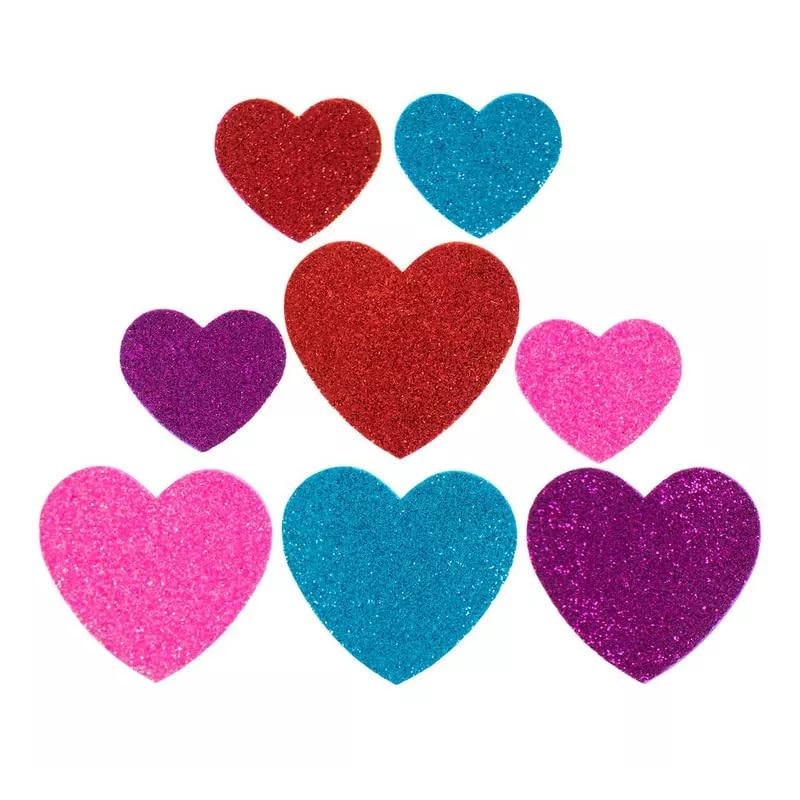 - Valentine's Day glitter foam heart stickers in a variety of sizes and colors