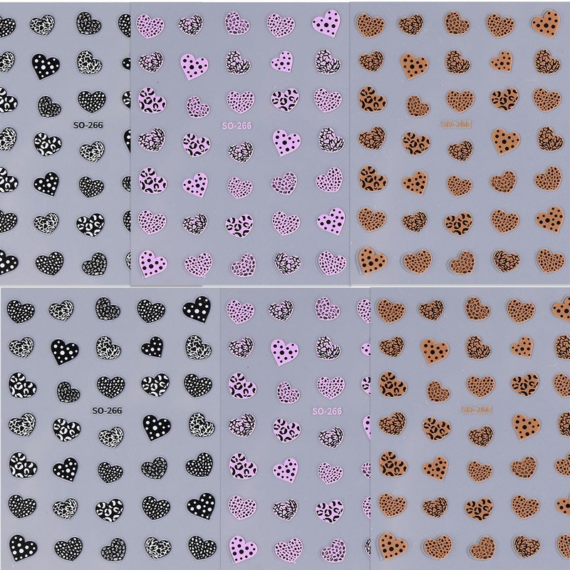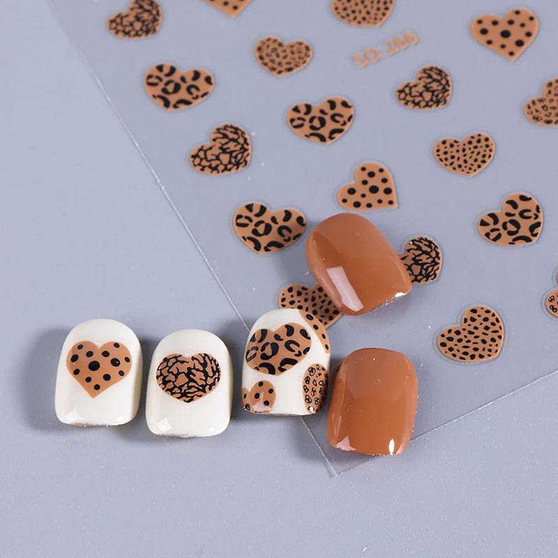 Valentine's Day Nail Stickers Heart Nail Decal 6PCS 3D Self-Adhesive Leopard Print Nail Art Stickers Brown Black Purple Leopard Heart Nail Art Design Supplies Stickers for Women Nails Art Decorations
