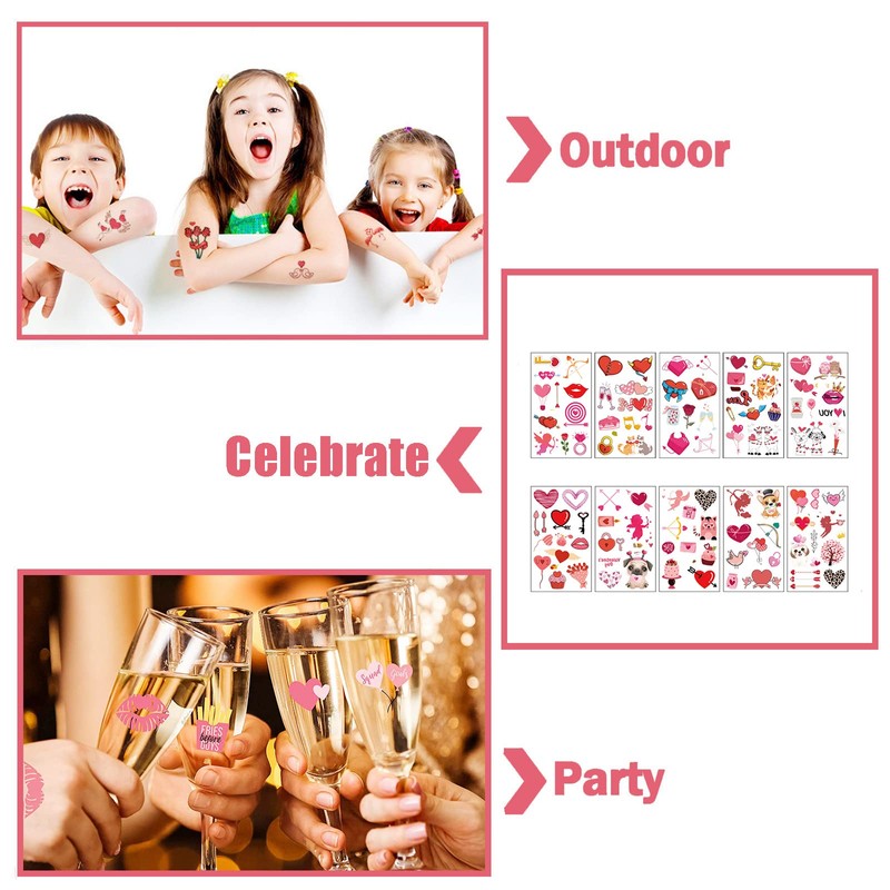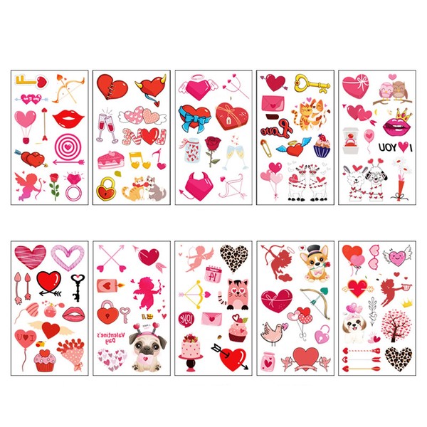 Valentine's Day Temporary Tattoos for Girls,Adults,Teens,10 Sheets Lovers Tattoos Love Heart Flower Tattoos Face Body Stickers for Kids Birthday,Men,Women Wedding Valentine's Day Party Decorations