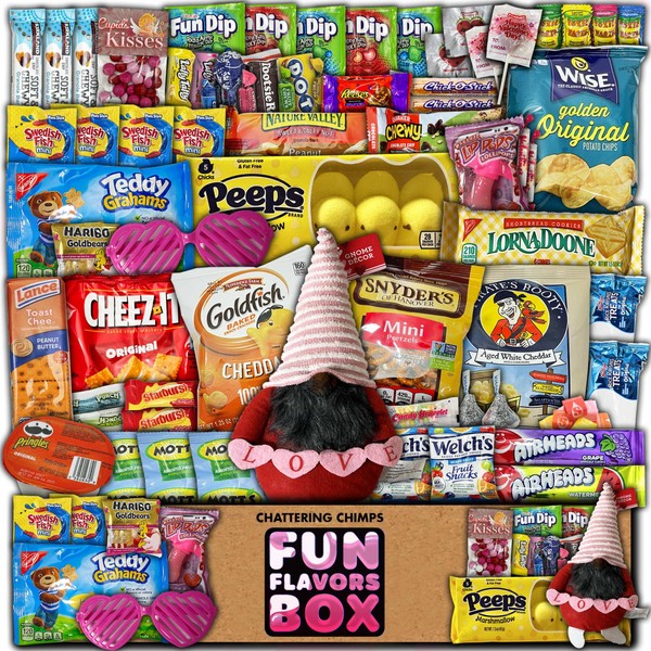 Valentine’s Day Variety Pack (80 Count) Care Package Gift Basket, Candy, Chips, Chocolates, Gnome, Love Themed Gift Box