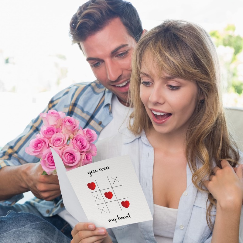 - 💖 RED FOIL HEART DESIGN: Give your loved one a special and romantic Valentines Day card featuring a charming tic-tac-toe theme with the message "You Won My Heart," adorned with foil red hearts for a vibrant and eye-catching touch.