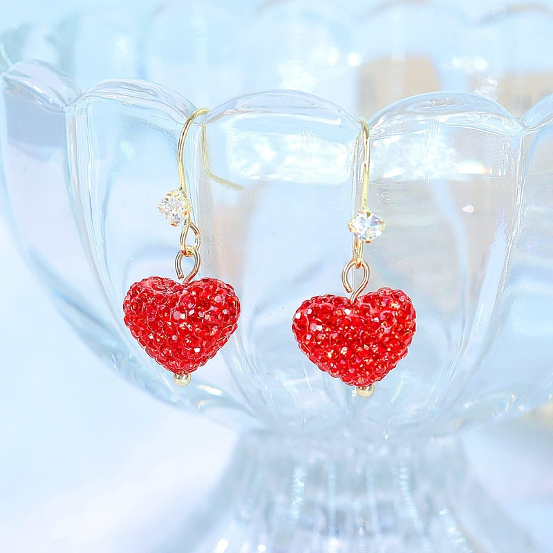 Valentines Day Earrings for Women Red Love Heart Earrings Beaded Valentines Earrings Sparkly Rhinestone Heart Earrings Statement Heart Dangle Earrings Valentines Day Gifts for Her