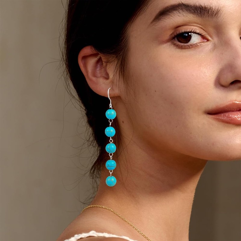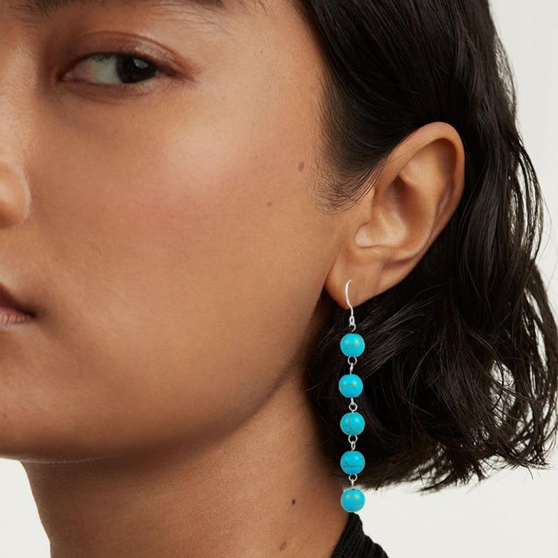 - 『VERSATILE FOR VARIOUS OUTFITS AND OCCASIONS』:Sterling silver turquoise earrings feature a dangling design, with the turquoise stones suspended from sterling silver hooks .Turquoise dangle earrings can be easily dressed up or down, making them a versatile accessory for various outfits and occasions.