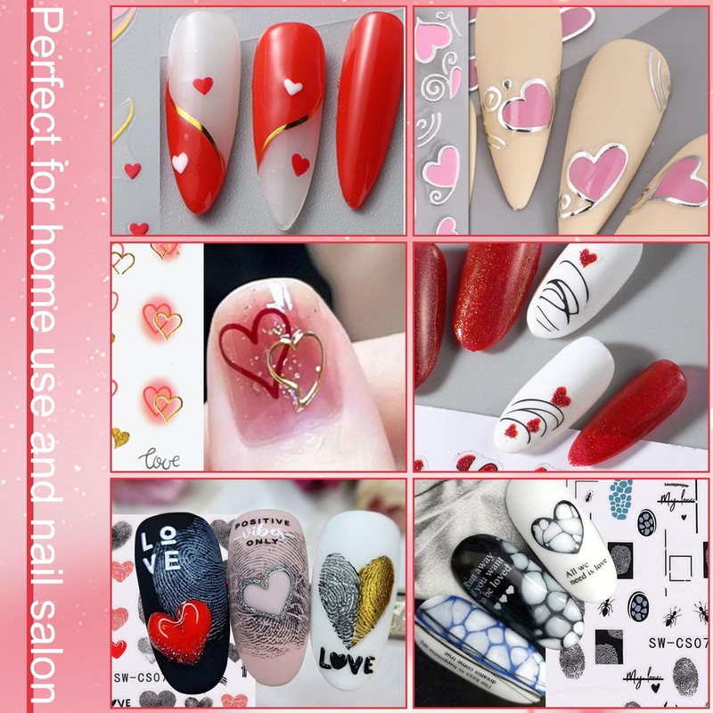 - 【EASY TO USE】-- The romantic love design nail decals are self-adhesive, just choose your favorite pattern and stick the nail stickers on your nails, toe nails, fake nails, etc