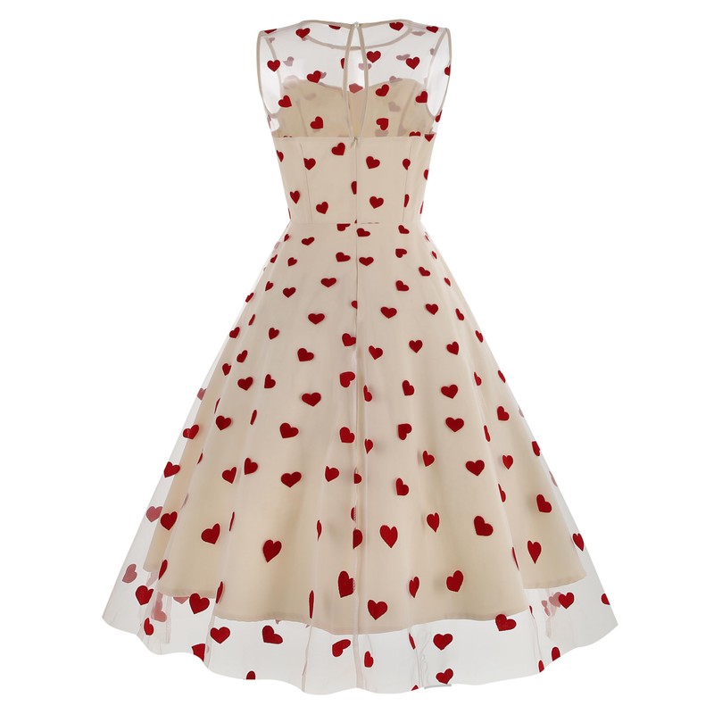 Valentines Dresses for Women Tulle Dresses Short Sweetheart Mesh Sheer Heart Printed Dress Fit and Flare Homecoming Dresses Sleeveless Wedding Guest Dresses Summer Cocktail Party Dress Apricot Heart L